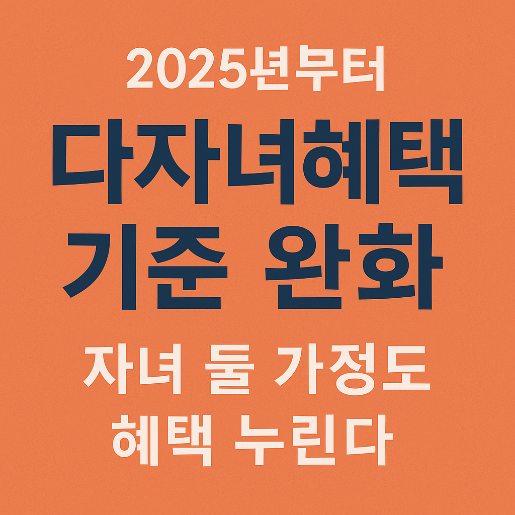 2025년부터 다자녀혜택 기준 완화가 본격적으로 시행되면서 이제 자녀 2명만 있어도 다양한 혜택을 받을 수 있게 되었습니다. 기존에는 3명 이상의 자녀가 있어야 가능했던 지원이 2명 이상 가정에도 확대 적용되는 것이 가장 큰 변화입니다. 이번 글에서는 다자녀혜택 기준 완화로 인해 달라진 지원 내용을 구체적으로 정리해드리겠습니다. 특히 교육, 주거, 교통, 문화시설 등 생활 전반에 걸쳐 다양한 혜택이 제공되기 때문에 해당되시는 가정은 꼭 확인해보셔야 합니다.