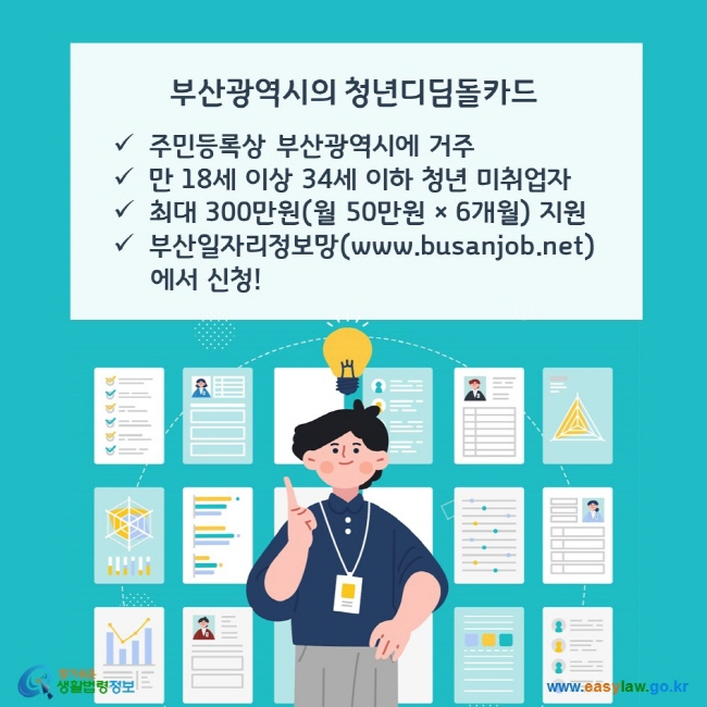 | 부산 | 18~34세 | 6개월 | 300만 원 | 디딤돌카드, 구직활동 전용 |