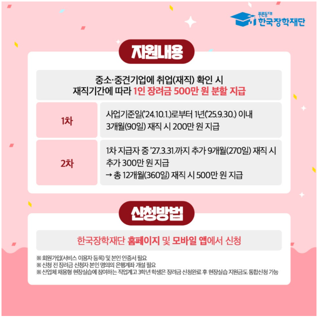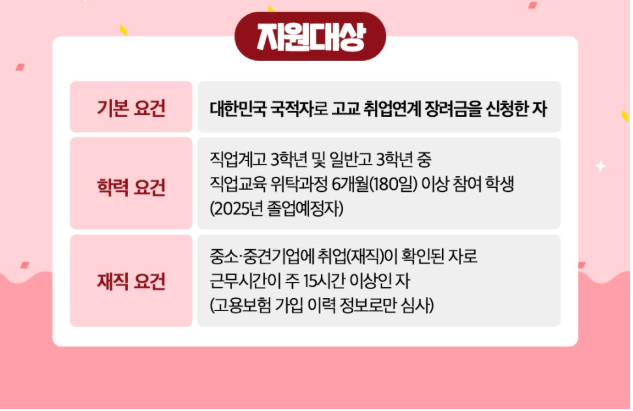 | 지원대상 | 만 15~34세, 고졸·전문대 마지막 학기 청년 |