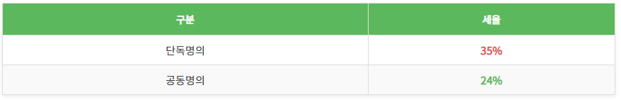 | 공동명의 | 1억원씩 분산 | 24% | 총 약 1,200만원 |