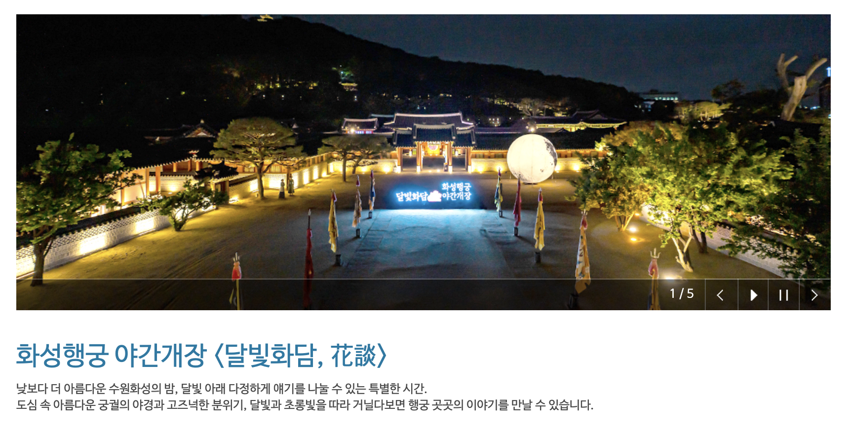 ③ 화성행궁 야간개장 – 달빛 산책 & 수상 퍼포먼스